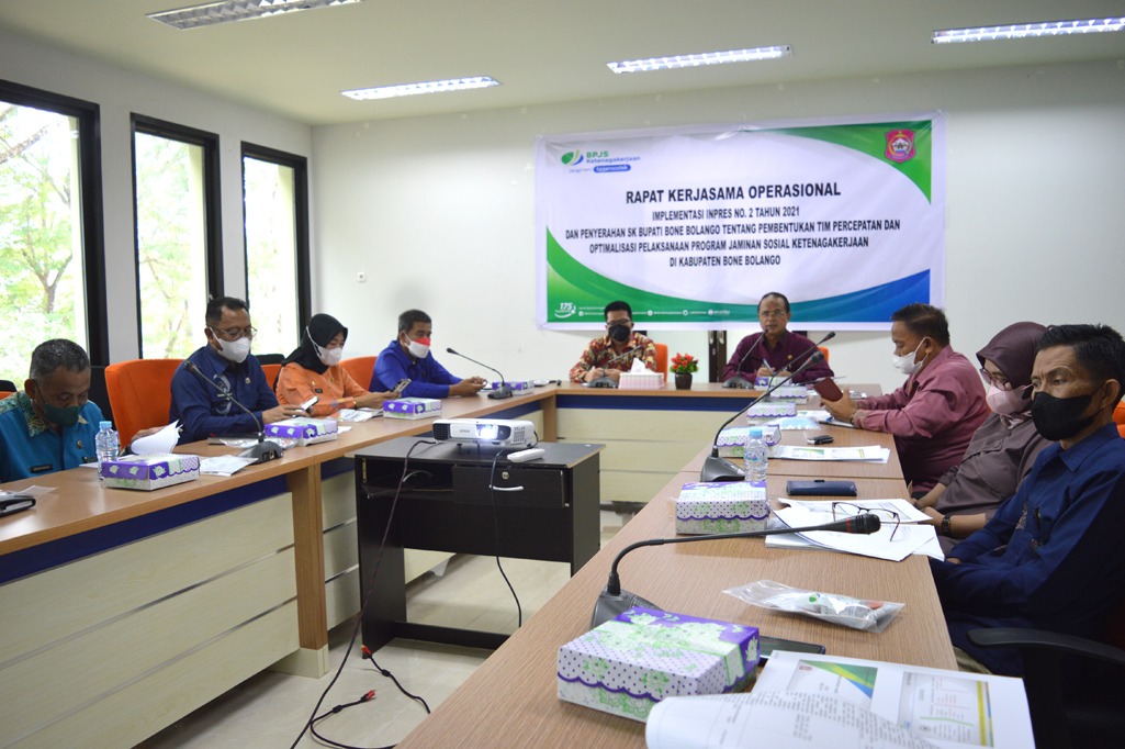 Sementara itu, dalam rapat Kerjasama Operasional Implementasi Inpres Nomor 2 Tahun 2021 dan Penyerahan SK Bupati Bonebol, tentang Pembentukan Tim Percepatan dan Optimalisasi Pelaksanaan Program Jamsostek di Kabupaten Bonebol, Kepala BPJAMSOSTEK Provinsi Gorontalo, Hendra Elvian, mengapresiasi langkah Pemerintah Kabupaten Bonebol tersebut.