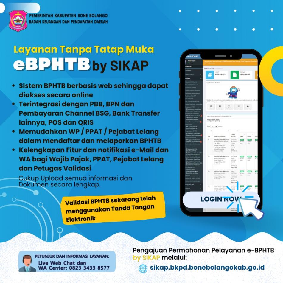 Terbaru, Pemerintah Daerah melalui Tim Percepatan Perluasan Digitalisasi Daerah (TP2DD) meluncurkan layanan Tanpa Tatap Muka (TTM) untuk pengurusan Validasi BPHTB.