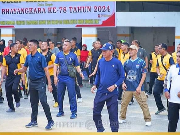 Labuhanbatu – Mewakili Bupati Labuhanbatu, Asisten 1 Pemerintahan dan Kesra Kabupaten Labuhanbatu Drs. Sarimpunan Ritonga, M.Pd., bersama Kepala Kepolisian Resor Labuhanbatu AKBP Dr. Bernhard L. Malau, S.I.K., M.H., mengikuti kegiatan Olaharaga bersama dalam rangka peringatan Hari Bhayangkara ke 78 yang diselenggarakan oleh Polres Labuhanbatu di Pelataran Stadiun Binaraga, Rantau Utara, Sabtu (29/06/2024).