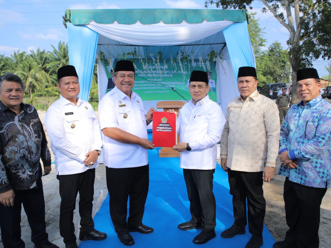 Asahan – Pemerintah Kabupaten Asahan secara resmi menyerahkan sertifikat tanah hibah seluas 94.030 meter persegi untuk pembangunan Madrasah Aliyah Negeri (MAN) Insan Cendekia Kabupaten Asahan. Penyerahan dilakukan di Jalan Budi Utomo, Kelurahan Mutiara, Kecamatan Kota Kisaran Timur, di atas lahan eks BSP, sebagai wujud komitmen Pemerintah Kabupaten Asahan dalam mendukung penguatan pendidikan menengah unggulan berbasis keislaman.