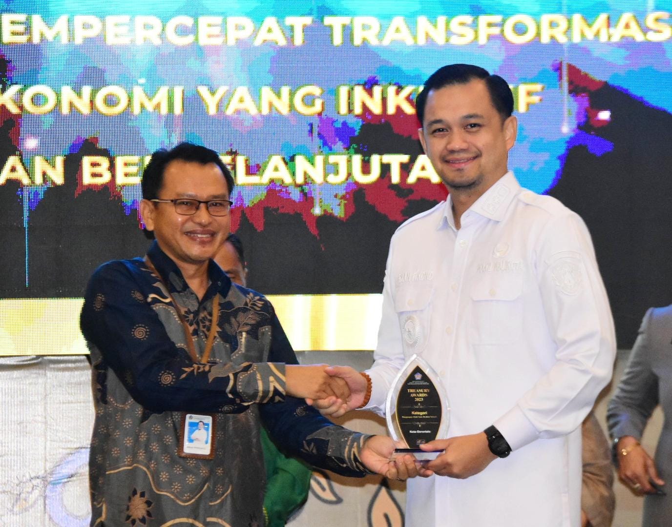 Treasury Awards 2023 ini dengan mengangkat tema “Mempercepat Transformasi Ekonomi Yang Inklusif dan Berkelanjutan” kegiatan ini merupakan agenda tahunan yang ditujukan untuk memberikan penghargaan kepada pemerintah daerah, satuan kerja kantor vertikal, serta dinas tingkat provinsi dan kabupaten/kota yang mempunyai kinerja pengelolaan keuangan terbaik.
