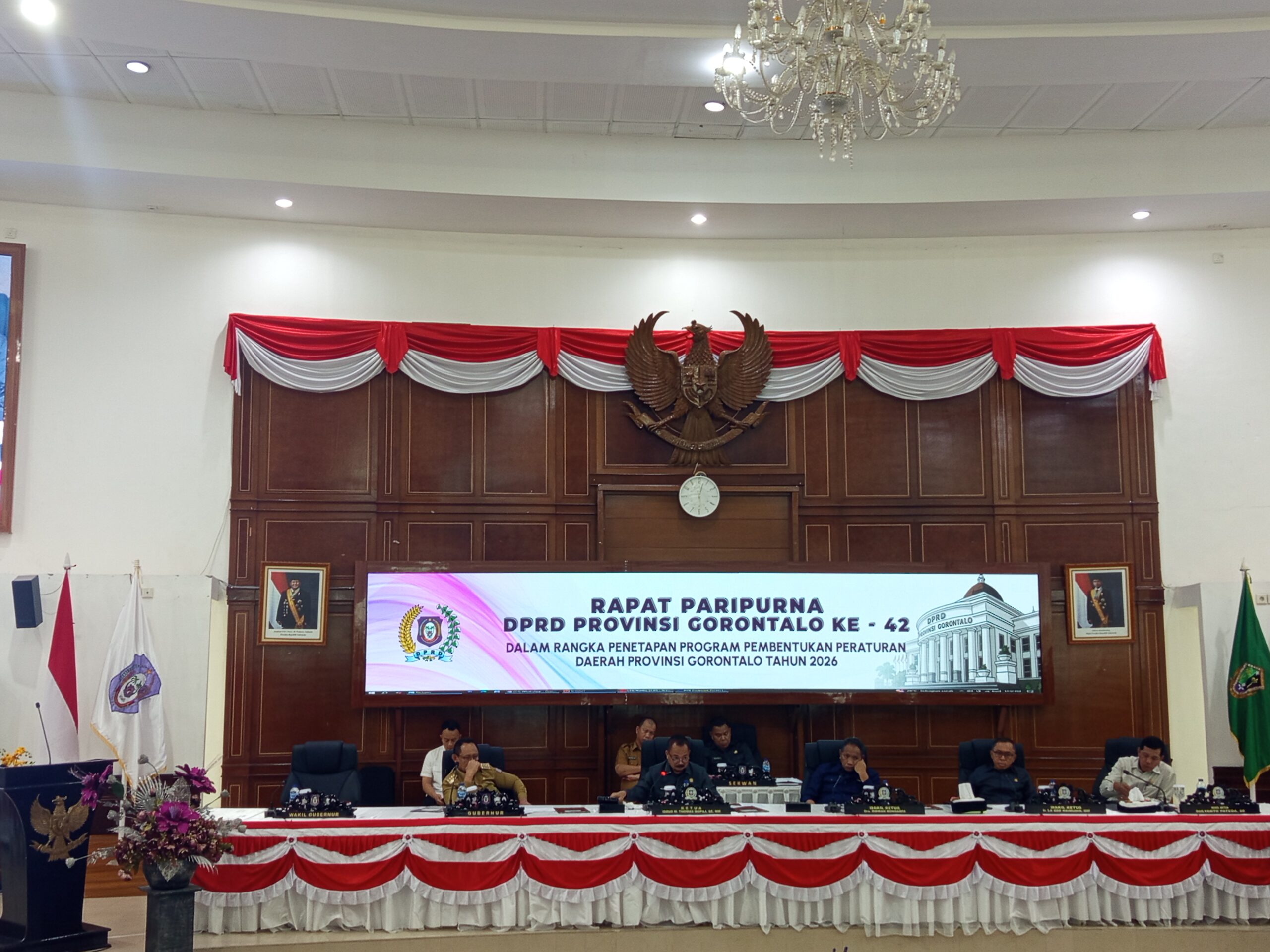 Gorontalo – Dewan Perwakilan Rakyat Daerah (DPRD) Provinsi Gorontalo resmi menetapkan 15 Rancangan Peraturan Daerah (Ranperda) dalam Program Pembentukan Peraturan Daerah (Propem Perda) Tahun 2026. Penetapan itu dilakukan melalui Rapat Paripurna ke-42 yang digelar pada Senin (08/09/2025).