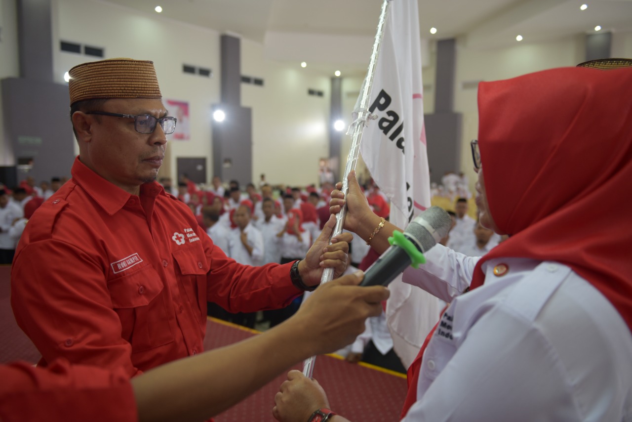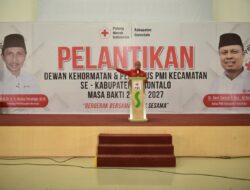 , Gorontalo – Pengurus Palang Merah Indonesia (PMI) Kecamatan se-Kabupaten Gorontalo, masa bakti 2022-2027 resmi dilantik Ketua PMI Roni Sampir.