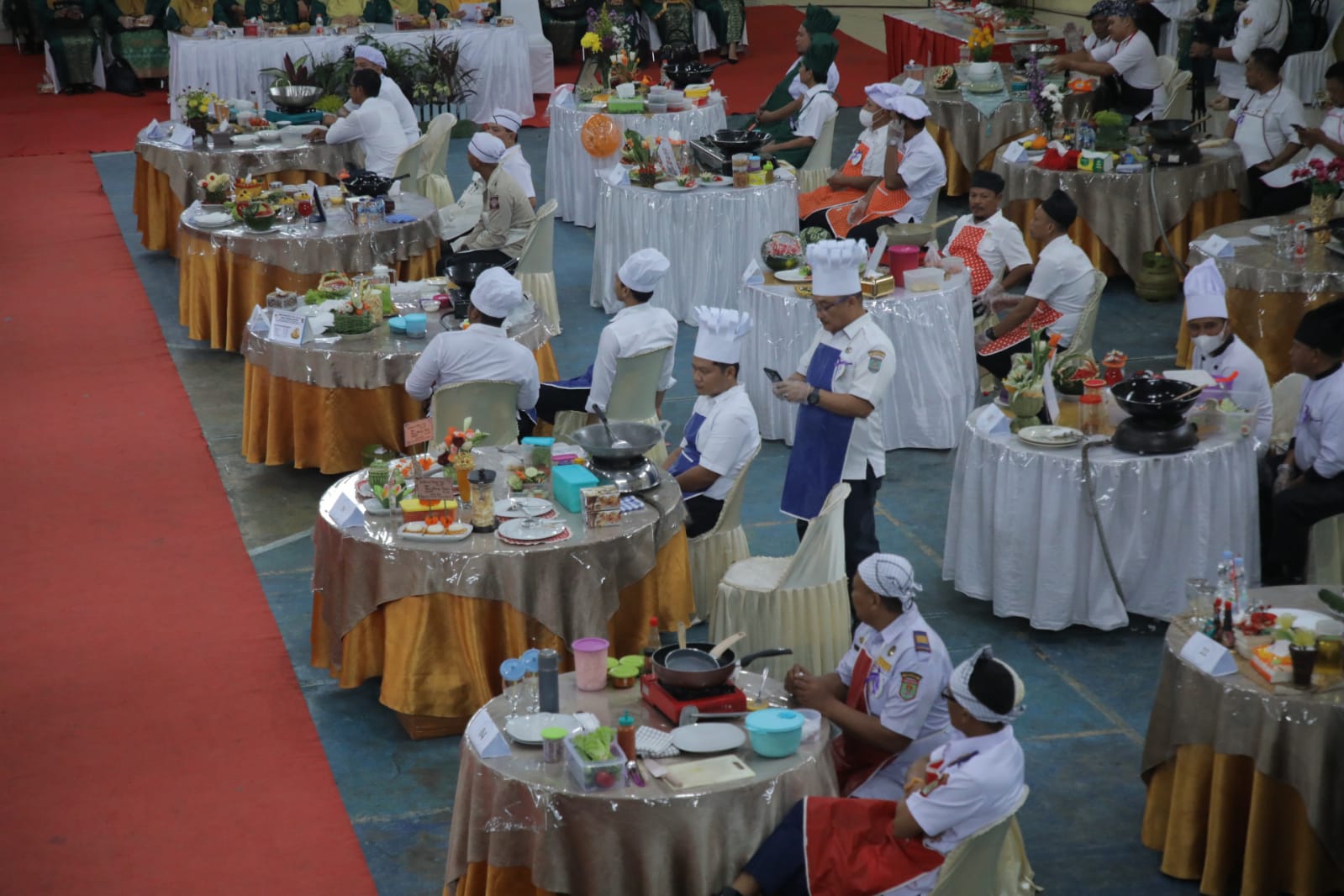 , Asahan – Untuk memeriahkan Peringatan Hari Ibu ke-95 Tahun dan Hari Ulang Tahun (HUT) ke-24 Dharma Wanita Persatuan (DWP), Pemerintah Kabupaten Asahan melalui Dinas Pengendalian Penduduk Keluarga Berencana Pemberdayaan Perempuan dan Perlindungan Anak (P2KBP3A) Kabupaten Asahan menggelar lomba memasak nasi goreng bagi Bapak OPD dan Bapak Camat di Gedung Serbaguna Kisaran, Rabu (20/12/2023). Turut hadir Bupati Asahan, Sekretaris Daerah Kabupaten Asahan, Para Asisten, Ketua TP PKK Kabupaten Asahan beserta pengurus, Ketua DWP Kabupaten Asahan beserta pengurus, Ketua DWP Unit Dinas, Ketua DWP unit Kecamatan, OPD, Camat dan tamu undangan lainnya.