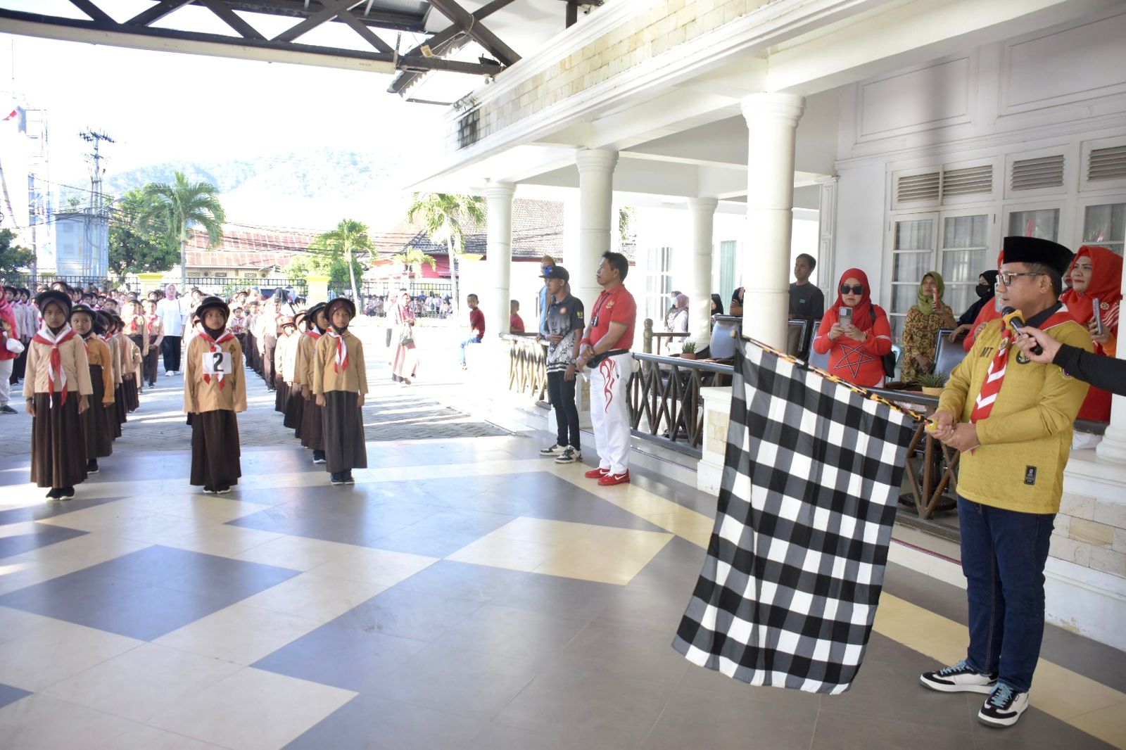, KOTA GORONTALO – Semangat perayaan Hari Pramuka yang ke-62 dan Hari Ulang Tahun (HUT) Kemerdekaan Republik Indonesia (RI) yang ke-78 begitu terasa di Kota Gorontalo. Pemerintah Kota telah menggelar aksi gerak jalan yang penuh semangat, dan dalam acara ini, Wali Kota Gorontalo, Marten Taha, turut berada di garis depan untuk melepas peserta gerak jalan yang berlangsung di Halaman Rumah Dinas Wali Kota Gorontalo pada Ahad (13/08/2023).