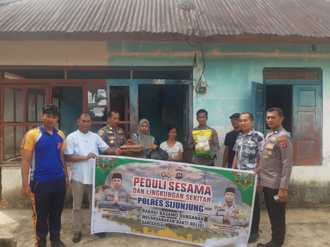 Sebanyak lima warga kurang mampu menerima langsung bantuan yang diserahkan oleh jajaran Polres Sijunjung. Kegiatan ini dipimpin oleh Kapolres Sijunjung AKBP William Harbensyah, melalui jajaran satuan Intelkam yang dipimpin oleh Kasat Intel AKP Harmen.