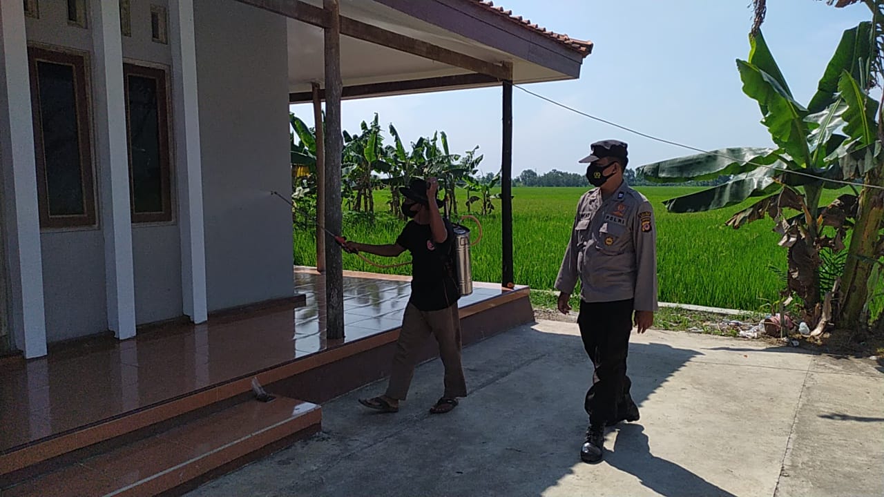 Kapolsek Sliyeg, AKP H. Amizar, beserta anggota personilnya, Bhabinkamtibmas Desa Tambi Lor Aiptu Damiat, bersama Pjs Kuwu dan Pamong Desa Tambi lor Kecamatan Sliyeg, kabupaten Indramayu, melaksanakan pencegahan penyebaran virus Covid-19 dengan penyemprotan secara berkala ke pemukiman warga desa Tambi Lor.