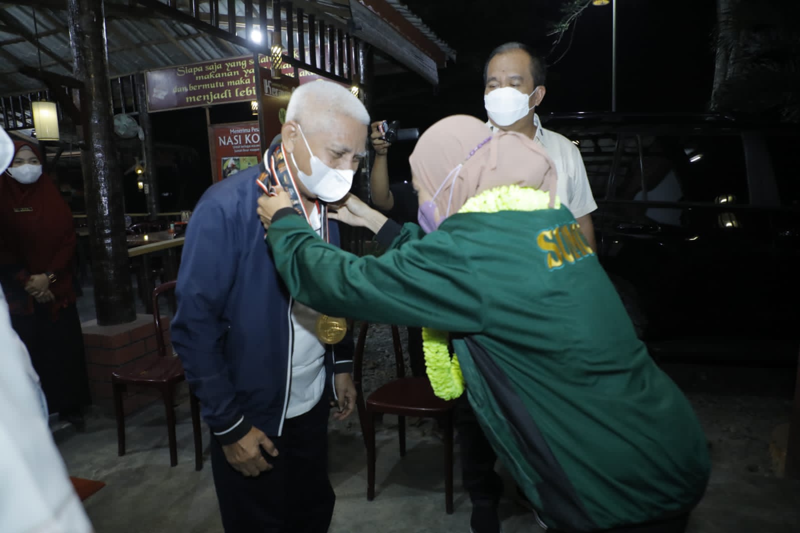 Kedatangan kedua orang atlet tersebut disambut oleh Bupati Asahan dan Wakil Bupati Asahan di rumah makan Keraton Kisaran, Sabtu (25/12/2021) malam.