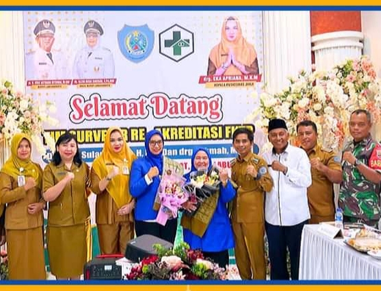 , Labuhanbatu – Sekretaris Dinas Kesehatan Kabupaten Labuhanbatu Marylin Simanjuntak menyambut kunjungan tim surveior Re-akreditas Fasilitas Kesehatan Tingkat Pertama (FKTP) Provinsi Sumatera Utara (Sumut) di Puskesmas Janji, Kecamatan Bilah Barat, Kabupaten Labuhanbatu, Selasa (12/12/2023).