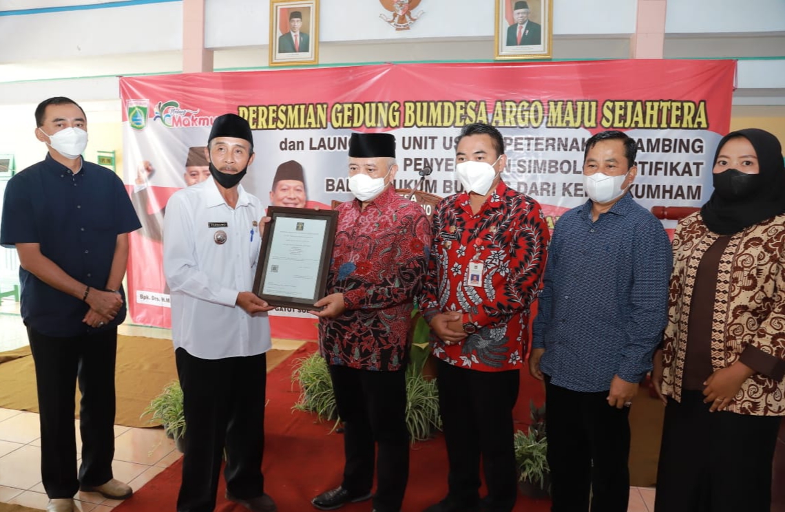 , Kabupaten Malang – Bupati Malang, H.M Sanusi, meresmikan Kantor dan Gedung baru Badan Usaha Milik desa (BUMdes) Argo Maju Sejahtera, Desa Argoyuwono, Kecamatan Ampelgading, Sabtu (15/1/2022) pagi.Bupati juga melaunching unit usaha peternakan Kambing, serta penyerahan secara simbolis sertifikat badan hukum BUMdes dari Kemenkumham. Acara berlangsung balai desa Argoyuwono, Kabupaten Malang.