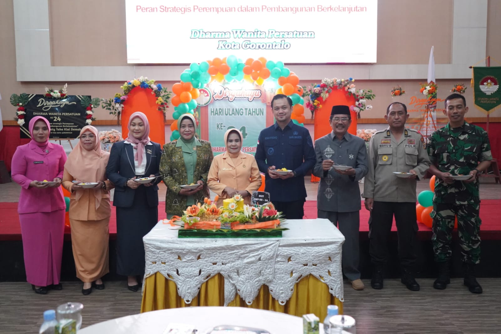 DAILYPOST.ID , Kota Gorontalo – Pada puncak perayaan HUT ke-24 Dharma Wanita Persatuan (DWP) Kota Gorontalo, Wakil Wali (Wawali) Kota Gorontalo, Ryan Kono menitipkan pesan bahwa DWP Kota Gorontalo ini memiliki peran penting dalam membentuk citra positif bagi para suami untuk menjalankan tugasnya sebagai penyelenggara negara.