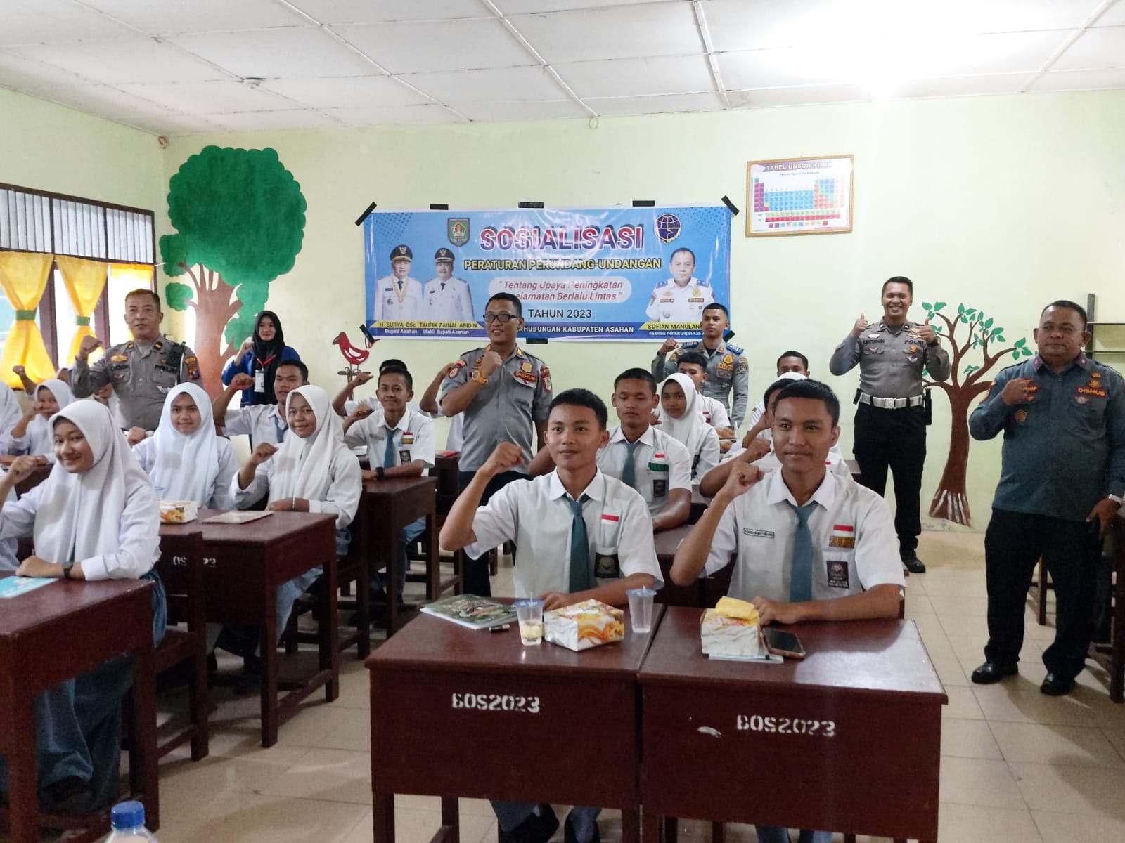 , Asahan – Satlantas Polres Asahan bekerjasama dengan Dinas Perhubungan (Dishub) Kabupaten Asahan menggelar Polisi Goes To School di SMA I Air Joman, Kecamatan Air Joman, Kabupaten Asahan, Selasa (1/8/2023).