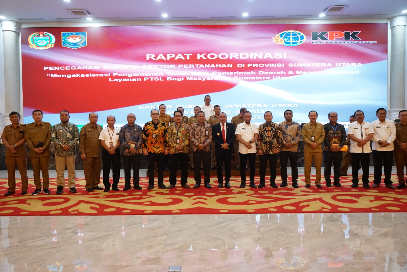 , Asahan – Sekretaris Daerah (Sekda) Kabupaten Asahan John Hardi Nasution mengikuti Rapat Koordinasi (Rakor) pencegahan korupsi sektor pertanahan di aula Raja Inal Siregar, Lantai 2, kantor Gubernur Sumatera Utara (Gubsu), jalan Pangeran Diponegoro, Medan, Selasa (13/6/2023).