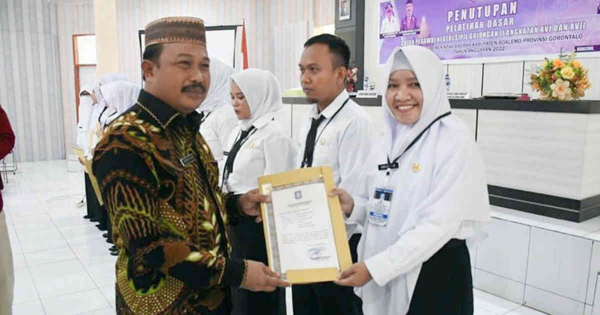 ,Boalemo- Sekretaris Daerah Dr. Sherman Moridu, S.Pd, MM menutup kegiatan Pelatihan Dasar (Latsar) Calon Pegawai Negeri Sipil Golongan II Angkatan XVI dan XVII di Kab. Boalemo, penutupan digelar di Balai Pelatihan Desa Tutulo Kec. Botumoito, Jum’at (9/9/2022).