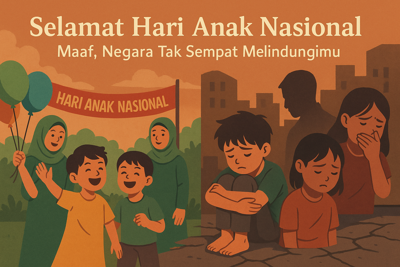 Opini – Tahun ini, Hari Anak Nasional kembali digelar dengan gegap gempita. Namun, di balik panggung perayaan itu, kenyataan yang terhampar sungguh memilukan. Data demi data mengungkapkan bahwa anak-anak di negeri ini justru hidup dalam bayang-bayang ancaman.