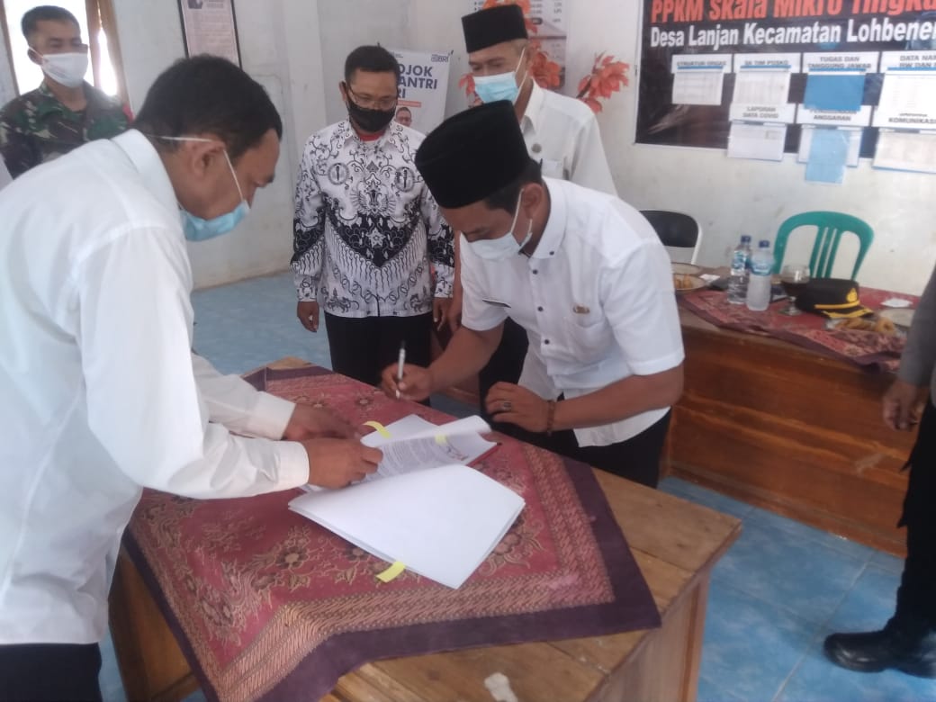 , Indramayu – Serah terima jabatan (serijab) periode 2021-2026 Kepala Desa Lanjan, Kecamatan Lohbener dilaksanakan bertempat di balai desa dengan mengedepankan protokol kesehatan yang ketat, Rabu (25/08/2021).