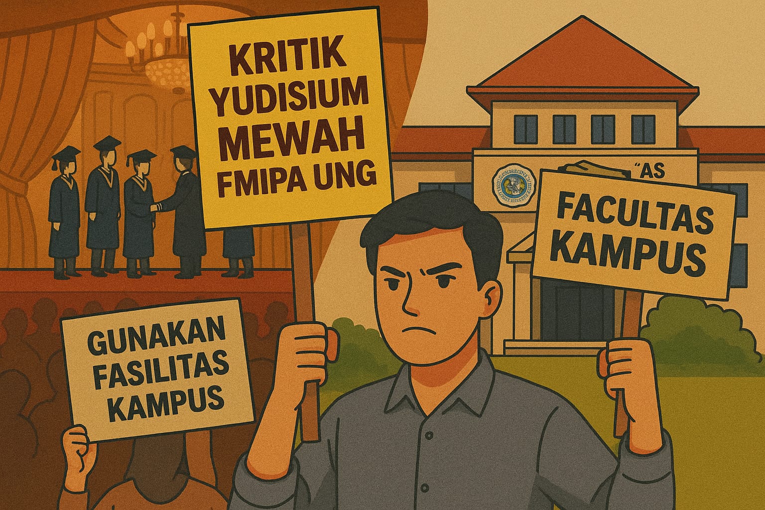 “Perlu evaluasi menyeluruh. Jangan sampai kemewahan menjadi standar baru. Padahal makna yudisium adalah penghargaan atas perjuangan akademik, bukan soal gedung tempat pelaksanaannya,” tambahnya.