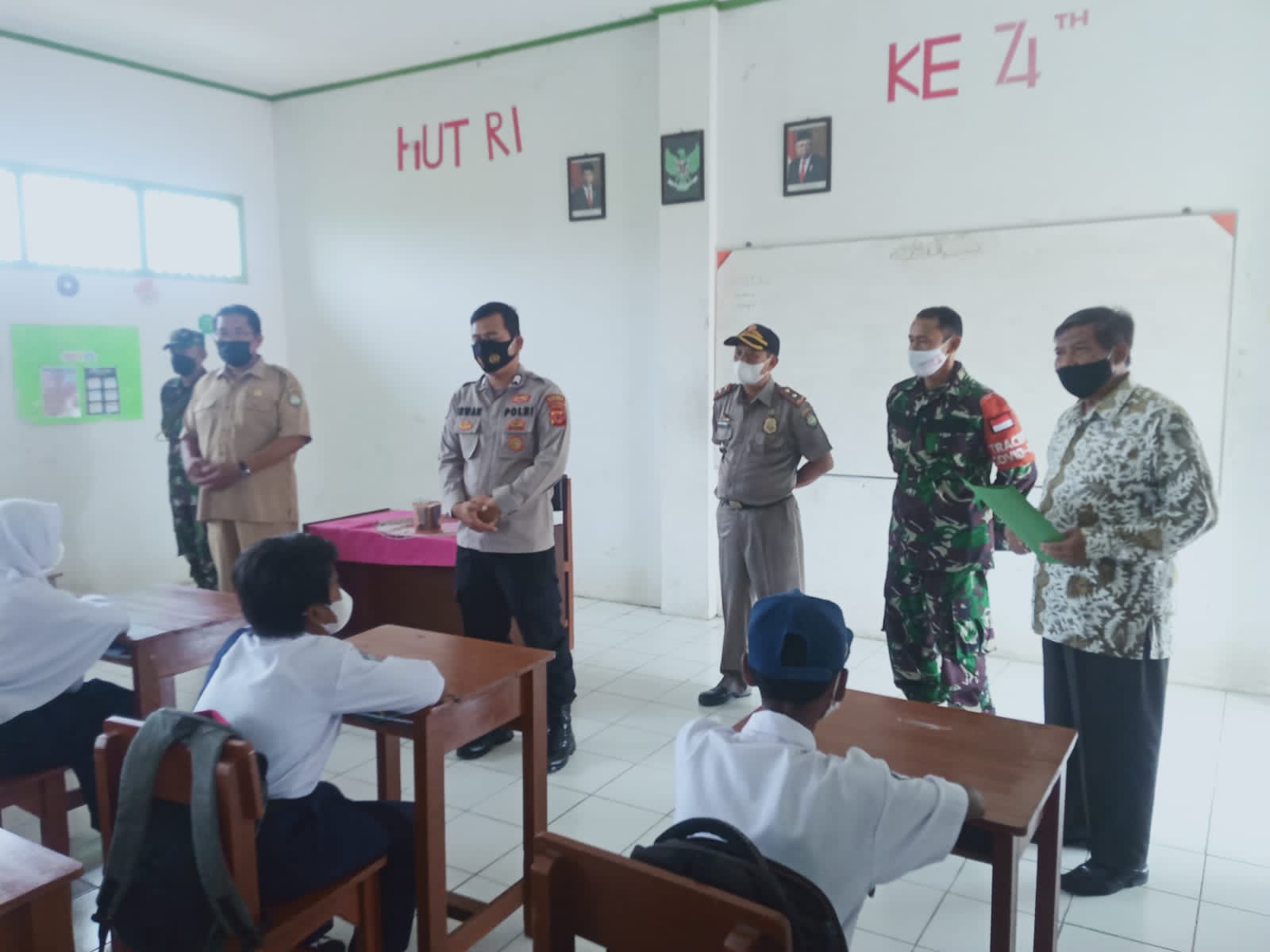 Kapolsek Juntinyuat, IPTU DEDI WAHYUDI, S.H, bersama empat anggota personilnya, dan Sat Pol PP Juntinyuat 2 Personil, serta Koramil Juntinyuat 5 orang, melakukan pengecekan Prokes di lingkungan sekolah, dan Memberikan Himbauan agar dilingkungan sekolah tetap menerapkan Prokes guna menanggulangi dan mencegah penyebaran Covid-19.