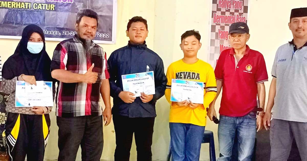 “Alhamdulillah, junior Taufik Eda meraih prestasi membanggakan dengan mendapatkan juara umum tingkat Provinsi Gorontalo di kelasnya. Taufik Eda yang masih berusia 12 Tahun ini adalah Carlsen dari Gorontalo yang menjadi aset berharga di Provinsi Gorontalo. Kepada juara satu di kelas senior, Abdul Wahab Nasa kami sampaikan selamat, ” ujar Udin, sapaan akrab ketua Pemcag bersama Sekretaris Panitia, Bripka Aripin Doda.