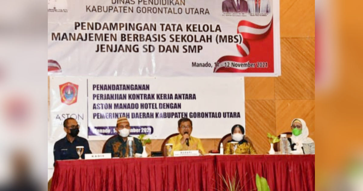 , Gorontalo Utara – Sebanyak 160 Kepala Sekolah jenjang SD dan SMP se-Kabupaten Gorontalo Utara (Gorut), mengikuti kegiatan Bimbingan Teknis (Bimtek) pendampingan tata kelola Manajemen Berbasis Sekolah (MBS) yang diselenggarakan oleh Dinas Pendidikan Kabupaten Gorontalo Utara.