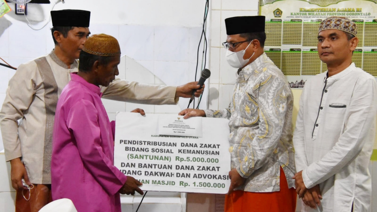 Dalam kesempatan itu, Tim Safari menyerahkan bantuan infaq dari Badan Amil Zakat (Baznas) Kabupaten Gorut, untuk pengelolaan masjid.