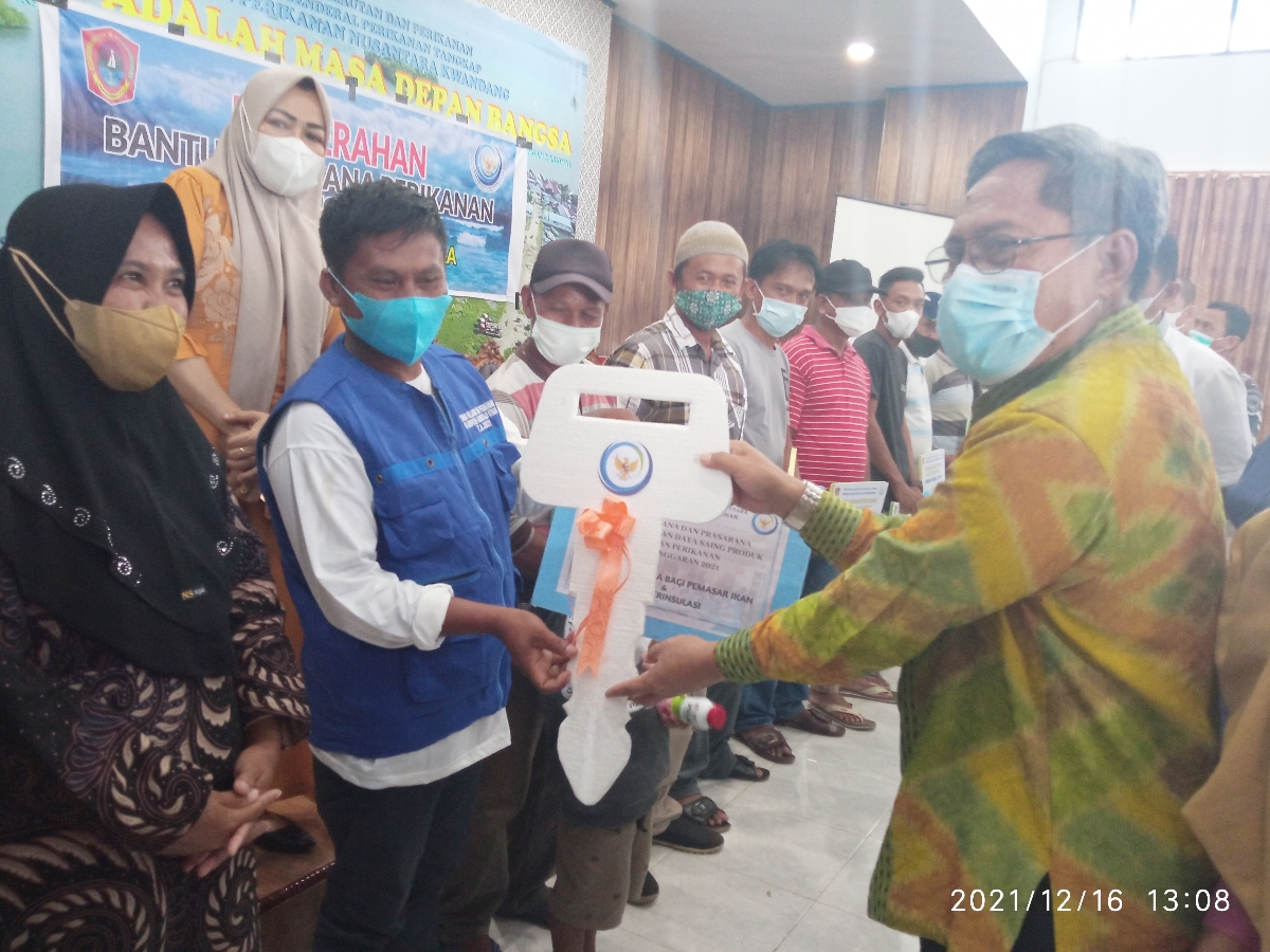 , Gorontalo Utara – Penyerahan bantuan berupa alat-alat sarana dan prasarana perikanan yang merupakan program pemerintah daerah (pemda) yang telah disetujui melalui APBD, resmi diberikan kepada para penerima bantuan melalui Dinas Perikanan dan Kelautan Kabupaten Gorontalo Utara, Kamis (16/12/2021).