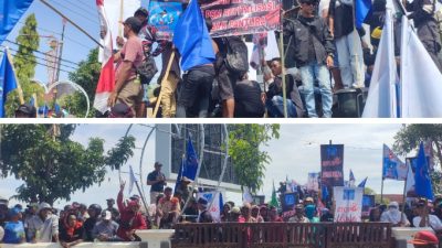 Indramayu – Sat Brimob Kompi 2 Batalyon C Pelopor Sat Brimob Polda Jabar melakukan pengamanan aksi unjuk rasa dari Koalisi…