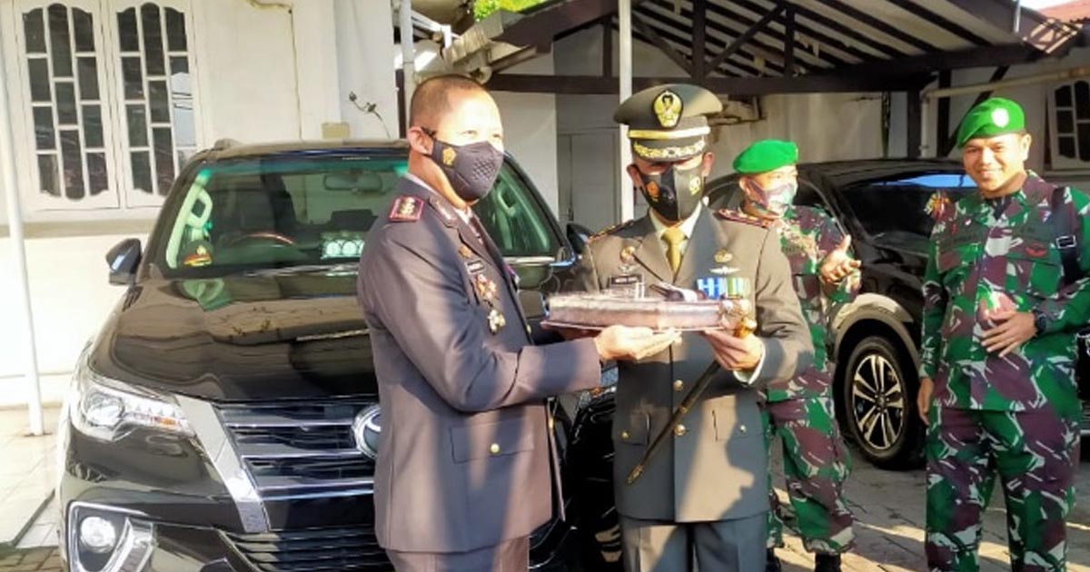 , Binjai – Peringati Hari Ulang Tahun (HUT) Bhayangkara ke-75 Tahun 2021, Dandim 0203/LKT, Letkol Inf Wisnu Joko Saputro, berkunjung silaturahim di kediaman Rumah Dinas Kapolres Binjai, Kamis (01/07/2021).