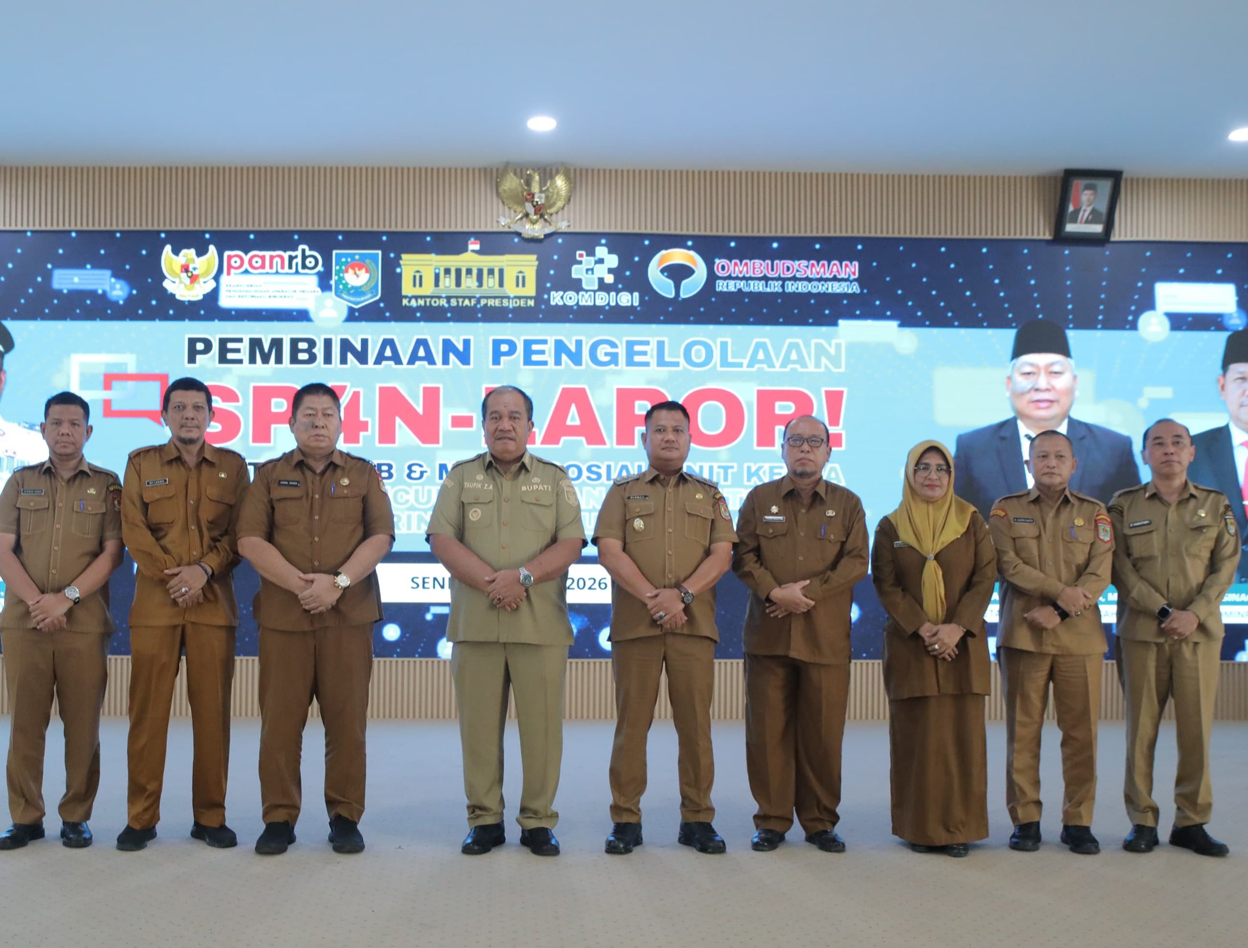 Asahan – Pemerintah Kabupaten (Pemkab) Asahan menggelar pelaksanaan pembinaan pengelolaan SP4N-LAPOR, portal/website, dan media sosial pada seluruh unit kerja, serta peluncuran layanan pengaduan masyarakat melalui whatsapp resmi Pemkab Asahan.