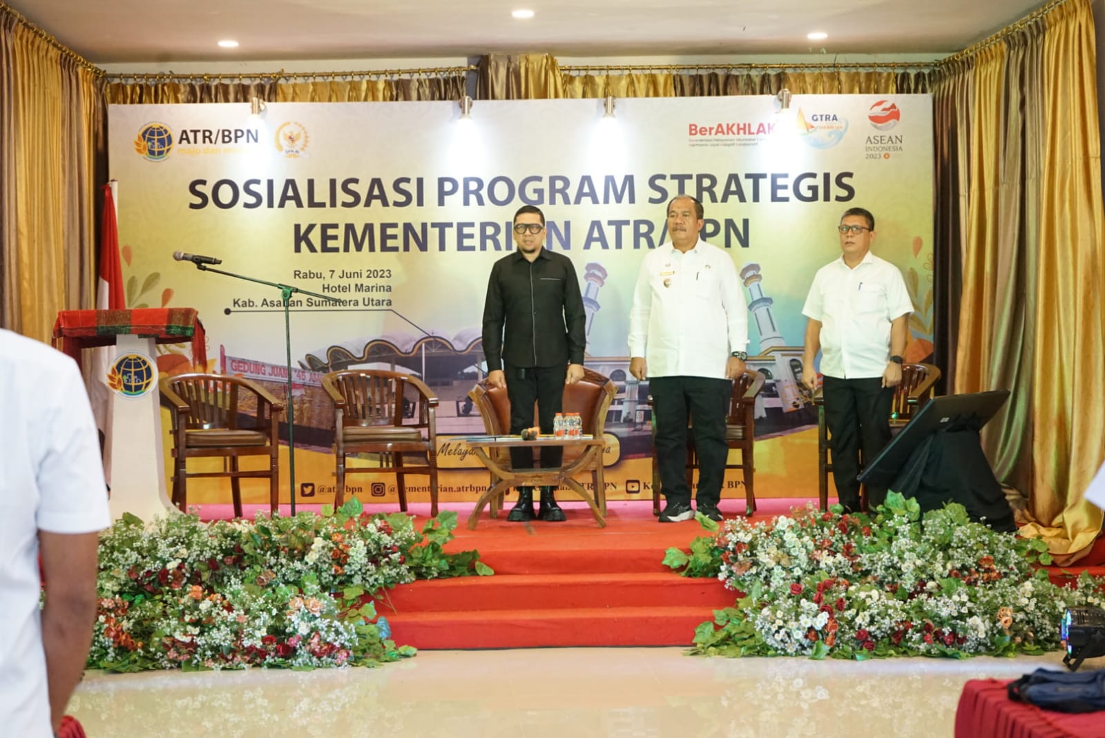 DAILYPOST.ID , Asahan – Wakil Bupati Asahan Taufik Zainal Abidin S. Sos, M. Si menghadiri Sosialisasi Program Strategis Kementerian ATR/BPN di Hotel Marina Kabupaten Asahan, Rabu (07/06/2023). Tampak hadir Ketua Komisi II DPR RI, Mewakili DPR Pusat, Kanwil BPN Provinsi Sumatera Utara, Kepala Kantor Pertanahan Kabupaten Asahan, Lurah, Ketua Apdesi dan Kepala Desa.