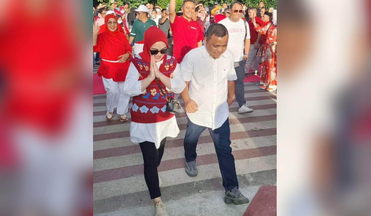 Pada kegiatan tersebut nampak Wakil Bupati (Wabup) Kabupaten Gorontalo didampingi sang istri turut memeriahkan kegiatan itu.