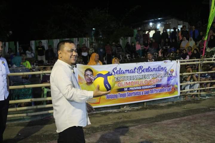 , Gorontalo – Wakil Bupati (Wabup) Gorontalo, Hendra S. Hemeto, membuka secara langsung turnamen volley ball dalam rangka memperingati HUT ke 11 Desa Olimohulo Kecamatan Asparaga.