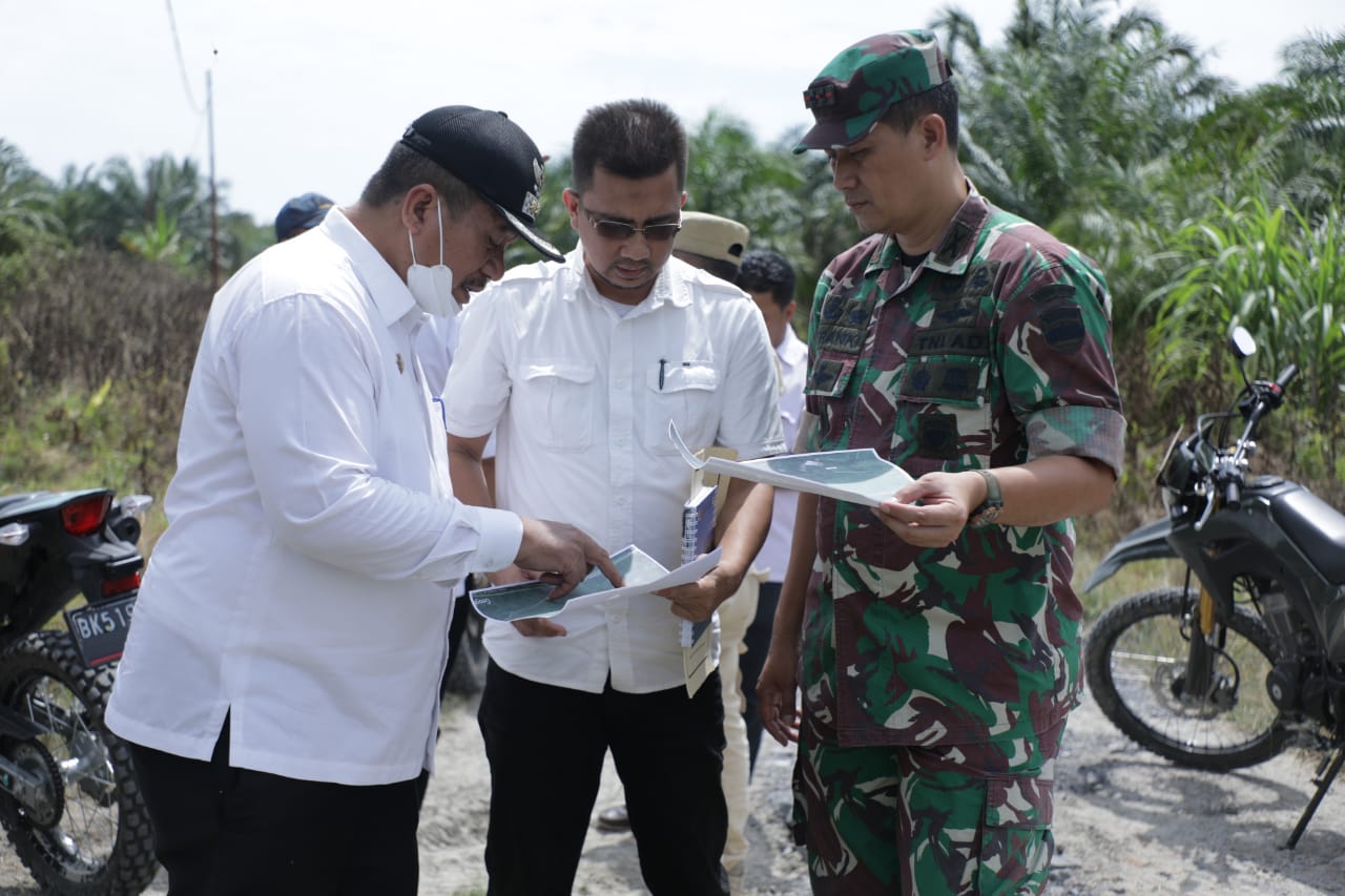 , Asahan – WAKIL Bupati Asahan Taufik Zainal Abidin bersama Dandim 0208/Asahan Letkol Inf Franki Susanto meninjau langsung rencana lokasi dan sasaran TNI Manunggal Membangun Desa (TMMD) tahun 2022 di Kecamatan Sei Kepayang Timur dan Kecamatan Silo Laut, Rabu (13/7/2022).