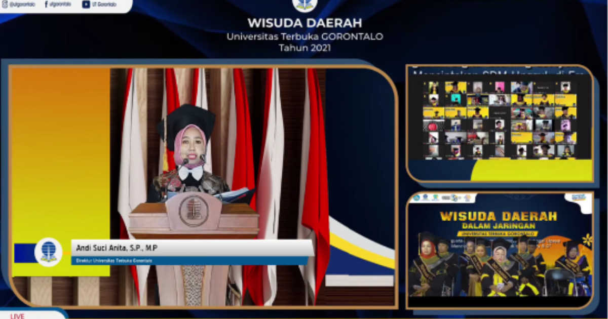 , Gorontalo – Kamis, 24 November 2021, Universitas Terbuka (UT) Gorontalo menyelenggarakan wisuda daerah periode II. Wisuda daerah dilaksanakan melalui aplikasi zoom dan siaran live channel UT Gorontalo. Peserta kegiatan pada kesempatan ini sebanyak 250 lulusan program diploma dan sarjana dari seluruh Provinsi Gorontalo.